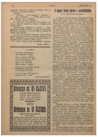 A magyar ifjúság szózata a nemzetgyűléshez : az Uj Élet budapesti tudósítójától. In: Uj [új] élet : politikai, társadalmi és kritikai hetilap, (2) 7. pp. 12-13. (1922)