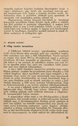 Mezősi József: A világ vasérc termelése. In: Phlogiston, (6). pp. 11-13. (1941)