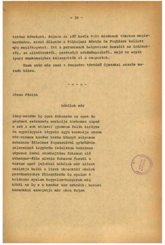 Józsa Fábián: Békélek már. In: Új impulzus : a JATE JTK agitációs és propaganda kiadványa, (1). p. 30. (1981)