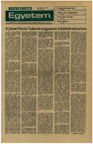 Belányi György: A József Attila Tudományegyetem küldöttértekezlete. In: Szegedi Egyetem, (19) 4. pp. 1-2. (1981)