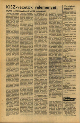 Mórocz Károly: KISZ-vezetők véleményei : a JATE kari küldöttgyűlésektől a KISZ kongresszusig. In: Szegedi Egyetem, (19) 7. p. 8. (1981)