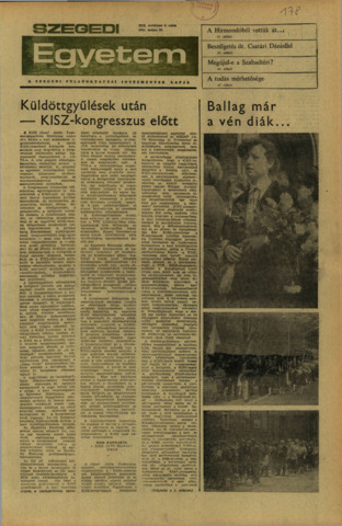 Kiss Barnabás: Küldöttgyűlések után - KISZ-kongresszus előtt. In: Szegedi Egyetem, (19) 8. pp. 1-2. (1981)