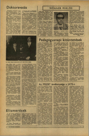 | Megjegyzések: | Dr. Dér Terézia tanársegéd és Kovács Katalin hallgató Aranykoszorús KISZ-jelvényt kapott |