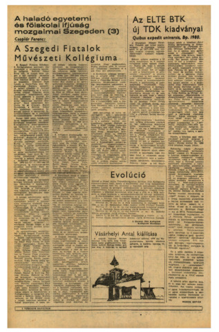 Evolúció. In: Szegedi Egyetem, (20) 3. p. 2. (1982)