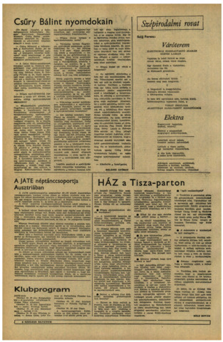 Klubprogram. In: Szegedi Egyetem, (20) 13. p. 4. (1982)