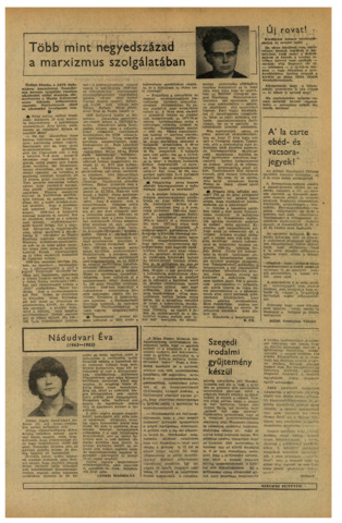 A'la carte ebéd-és vacsorajegyek. In: Szegedi Egyetem, (21) 1. p. 3. (1983)