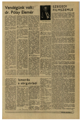 Kárpáti Judit: Ismerős a sörgyárból. In: Szegedi Egyetem, (22) 4. p. 5. (1984)