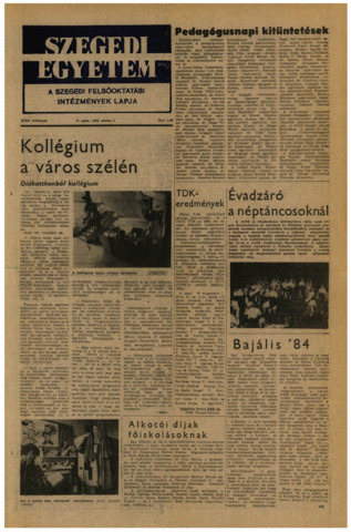 Abonyi Gyuláné: TDK-eredmények. In: Szegedi Egyetem, (22) 9. p. 1. (1984)
