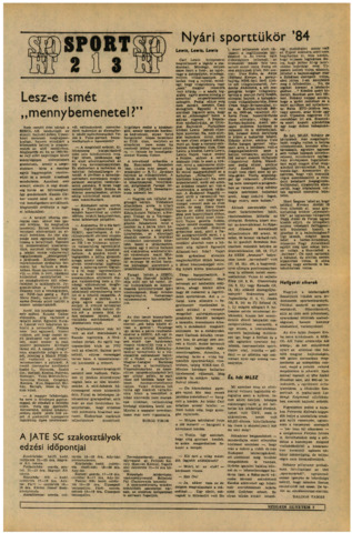 A JATE SC szakosztályok edzési időpontjai. In: Szegedi Egyetem, (22) 11. p. 7. (1984)
