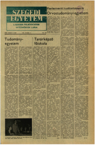 Dlusztus Imre: Tudományegyetem. In: Szegedi Egyetem, (22) 16. p. 1. (1984)