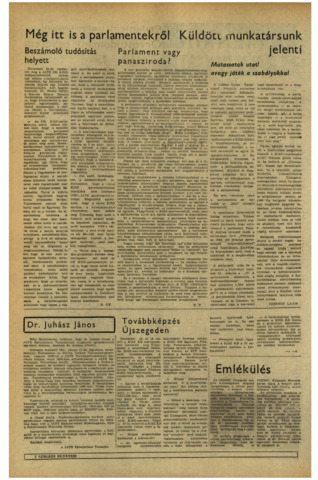 Belányi György: Még itt is a parlamentekről : Beszámoló tudósítás helyett. In: Szegedi Egyetem, (22) 16. p. 2. (1984)