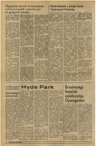Sandi István: Hyde park. In: Szegedi Egyetem, (23) 3. p. 2. (1985)