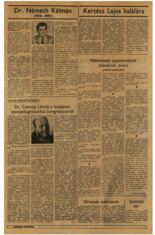 Visy Csabáné: Dr. Németh Kálmán : 1924-1985. In: Szegedi Egyetem, (23) 13. p. 2. (1985)