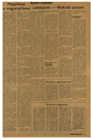 Gruber László: Máspillanat a magyarpillanat. In: Szegedi Egyetem, (23) 16. p. 7. (1985)