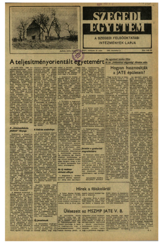 Újszászi Ilona: Az egyetemi tanács ülése és az "intézményi négyszög" döntése után : Hogyan hasznosítják a JATE épületeit? In: Szegedi Egyetem, (24) 16. p. 1. (1986)