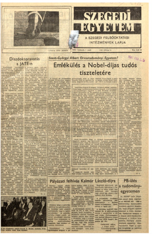 Sandi István: Szent-Györgyi Albert Orvostudományi Egyetem? : Emlékülés a Nobel-díjas tudós tiszteletére. In: Szegedi Egyetem, (25) 1. p. 1. (1987)