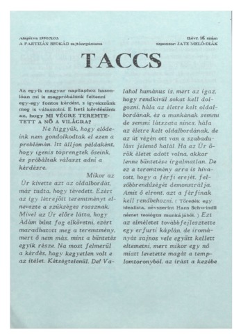 Taccs: a Partizán Beokád sajtóorgánuma. - II. évf. (1991) 16. sz.