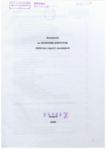 Beszámoló az Egyetemi Könyvtár 2005-ben végzett munkájáról.