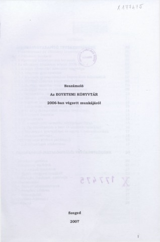 Beszámoló az Egyetemi Könyvtár 2006-ban végzett munkájáról.