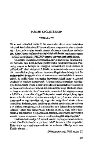 Kádár születésnap : vakvágány? In: A szabadság pillangója : 1956 Szegeden, az egyetemen : Emlékezések, írások, dokumentumok. p. 375. (2006)