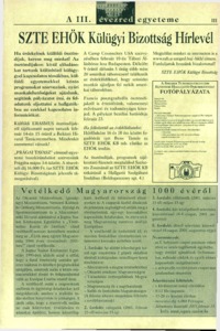 SZTE EHÖK Külügyi Bizottság hírlevél. In: Egyetem : a szegedi felsőoktatás információs háttérmagazinja, (3) 2. p. 3. (2001)