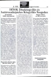 HÖOK Díszközgyűlés és határozatképtelen Közgyűlés Szegeden. In: Egyetem : a szegedi felsőoktatás információs háttérmagazinja, (5) 9. pp. 3-5. (2003)