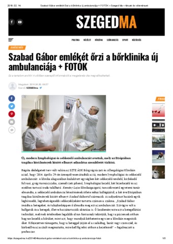 Szabad Gábor emlékét őrzi a bőrklinika új ambulanciája. In: SzegedMa.hu. (2014)