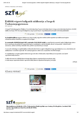 Külföldi végzett hallgatók találkozója a Szegedi Tudományegyetemen. In: SZTE Info. (2015)