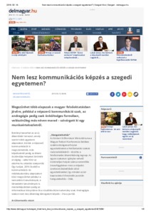 | Kapcsolódó URL: | http://www.delmagyar.hu/szeged_hirek/nem_lesz_kommunikacios_kepzes_a_szegedi_egyetemen/2421089/ |