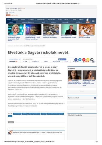 | Kapcsolódó URL: | http://www.delmagyar.hu/szeged_hirek/elvettek_a_sagvari_iskolak_nevet/2432107/ |