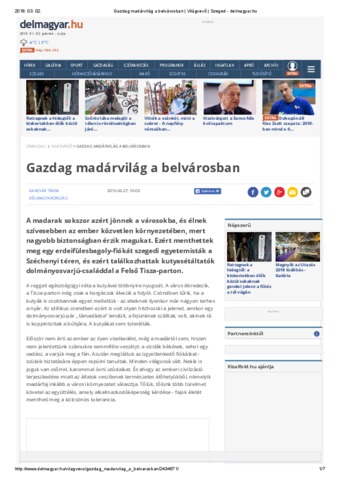 Kancsár Tímea: Gazdag madárvilág a belvárosban. In: Délmagyarország. (2015)