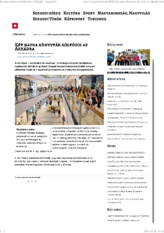 Két napra könyvtár költözik az Árkádba. In: Szeged.hu. (2013)