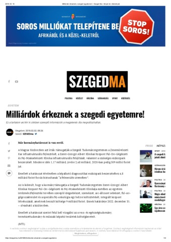 Milliárdok érkeznek a szegedi egyetemre! In: SzegedMa.hu. (2018)