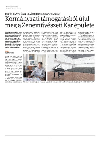 Gajzer Erzsébet: Kormányzati támogatásból újul meg a Zeneművészeti Kar épülete : Bartók Béla 110 évvel ezelőtti kérdésére kapunk választ. In: Délmagyarország, (108) 66. p. 4. (2018)