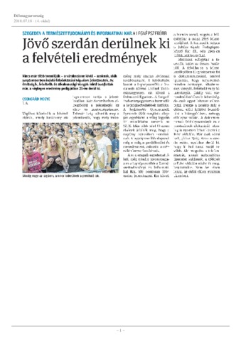 T. A.: Jövő szerdán derülnek ki a felvételi eredmények : Szegeden a Természettudományi és Informatikai Kar a legnépszerűbb. In: Délmagyarország, (108) 165. p. 4. (2018)
