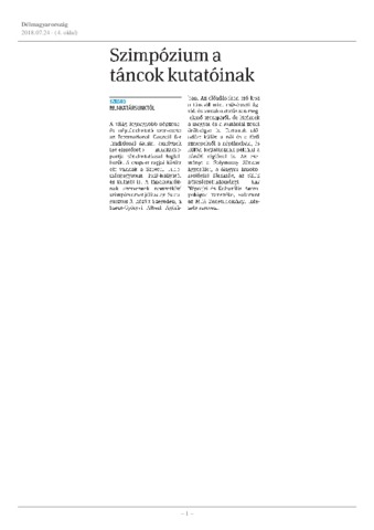Szimpózium a táncok kutatóinak. In: Délmagyarország, (108) 170. p. 4. (2018)
