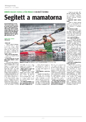 Mádi József: Segített a mamatorna. In: Délmagyarország, (108) 176. p. 15. (2018)
