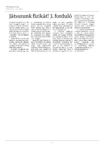 Játsszunk fizikát! 3. forduló. In: Délmagyarország, (109) 45. p. 10. (2019)