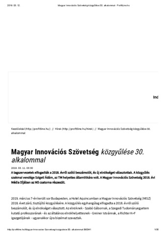 Magyar Innovációs Szövetség közgyűlése 30. alkalommal - ProfitLine.hu.pdf Letöltés (1MB) | Előnézet |