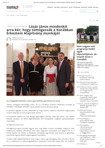 Lázár János mindenkit arra kér, hogy támogassák a Korábban Érkeztem Alapítvány munkáját. In: Vasarhely24.com. (2019)