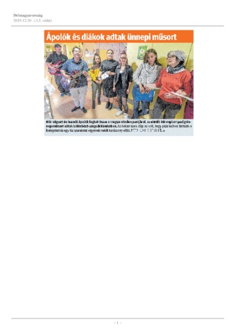 T. K.: Önkéntesek adtak ünnepi műsort a szegedi klinikákon. In: Délmagyarország, (109) 295. 1, 5. (2019)