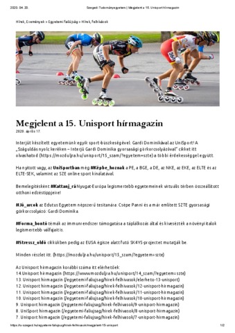 | Kapcsolódó URL: | https://u-szeged.hu/egyetemi-faliujsag/hirek-felhivasok/megjelent-15-unisport |