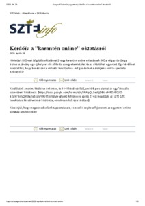 Kérdőív a "karantén online" oktatásról. In: SZTE Info. (2020)