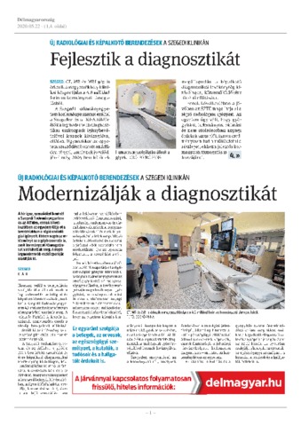 K. A. R.: Új radiológiai és képalkotó berendezések a szegedi klinikán : fejlesztik a diagnosztikát. In: Délmagyarország, (110) 119. 1, 4. (2020)