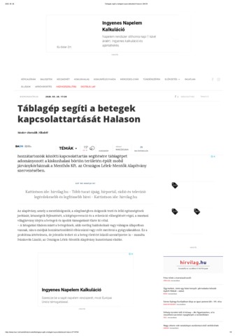 Mester-Horváth Nikolett: Táblagép segíti a betegek kapcsolattartását Halason. In: Baon.hu. (2020)