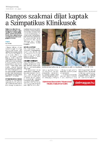 | Kapcsolódó URL: | https://www.delmagyar.hu/kozelet/helyi-kozelet/rangos-szakmai-dijat-kaptak-a-szimpatikus-klinikusok-6497124/ |