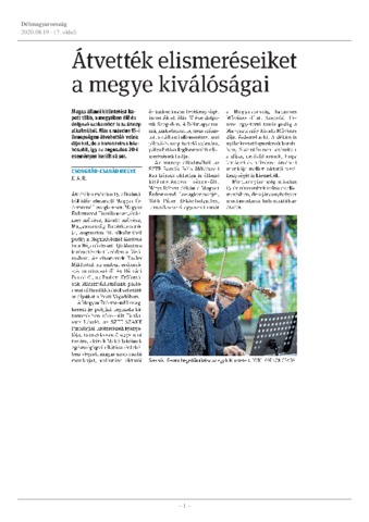 K. A. R.: Átvették elismeréseiket a megye kiválóságai. In: Délmagyarország, (110) 194. p. 7. (2020)