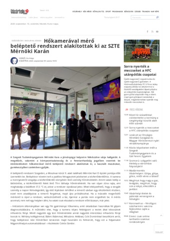Ács Helga: Hőkamerával mérő beléptető rendszert alakítottak ki az SZTE Mérnöki Karán. In: Vasarhely24.com. (2020)