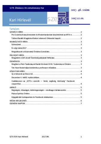 SZTE Általános Orvostudományi Kar hírlevél (2017) 46.sz.