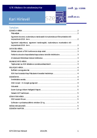 SZTE Általános Orvostudományi Kar hírlevél (2018) 39.sz.